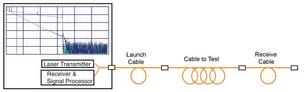 OTDRs are always used with a launch cable and may use a receive cable. The launch cable, sometimes also called a "pulse suppressor," allows the OTDR to settle down after the test pulse is sent into the fiber and provides a reference connector for the first connector on the cable under test to determine its loss. A receive cable may be used on the far end to allow measurements of the connector on the end of the cable under test also.